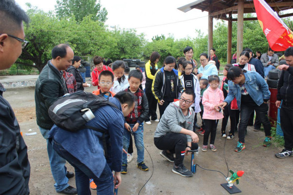 水火箭是一個利用質(zhì)量比和氣壓作用而設(shè)計的玩具,制作水火箭的過程比較復(fù)雜,可是我們的小朋友們還是特別有耐心,經(jīng)歷過失敗卻不放棄,看到自己和爸爸媽媽的發(fā)射自己手工制作的水火箭成功飛向天空,臉上的笑容也更加燦爛!